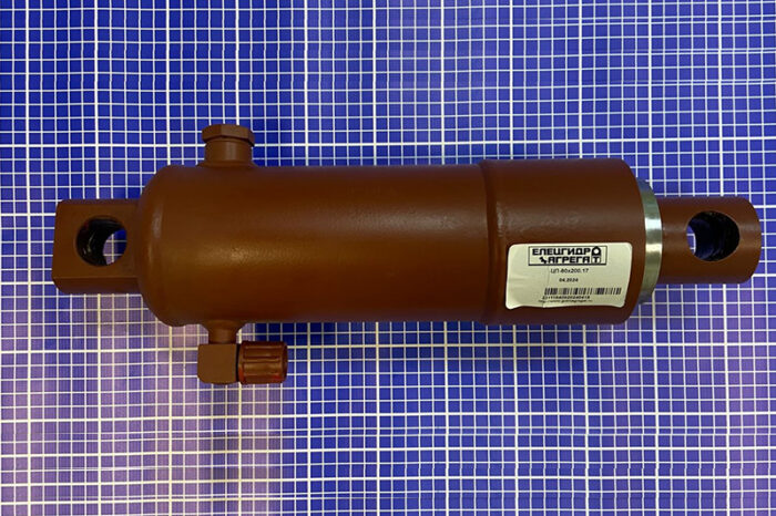 Цилиндр плунжерный производства АО «Елецгидроагрегат». Диаметр поршня 80 мм, диаметр штока 80 мм, ход поршня 200 мм, 2 проушины под палец диаметром 30 мм, межосевое расстояние от центра до центра проушины в сложенном состоянии 360 мм, давление: номинальное 20 Мпа, максимальное 25 Мпа. Применяется на ПЛУГ ОБОРОТНЫЙ ПОЛУНАВЕСНОЙ ППО производства ПАО «Грязинский культиваторный завод».